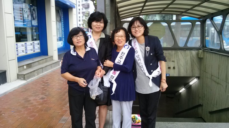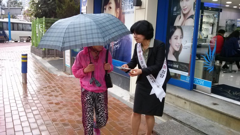 비가오는데도 가두선교를 실시했다.